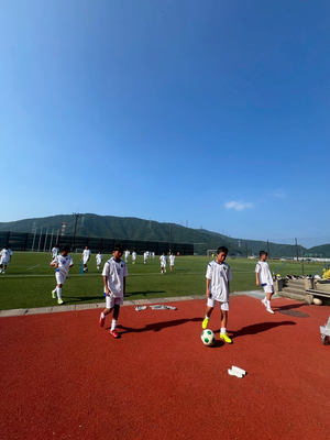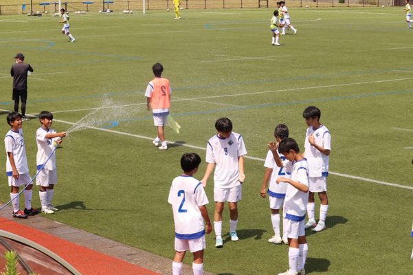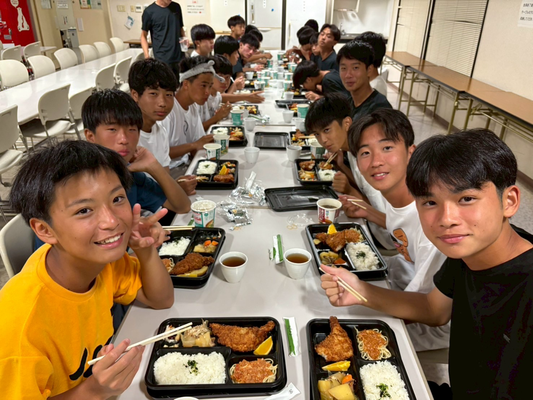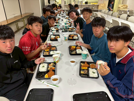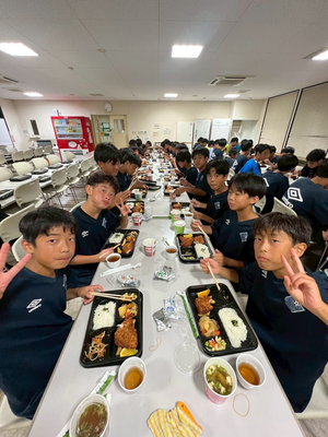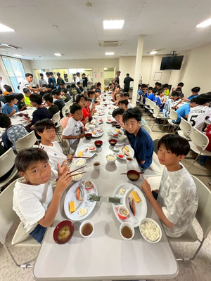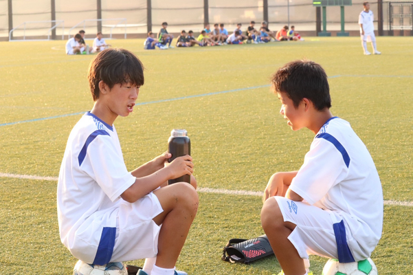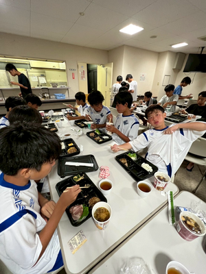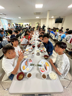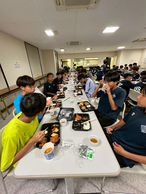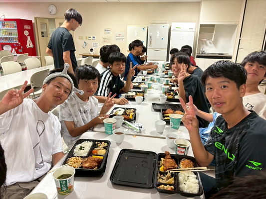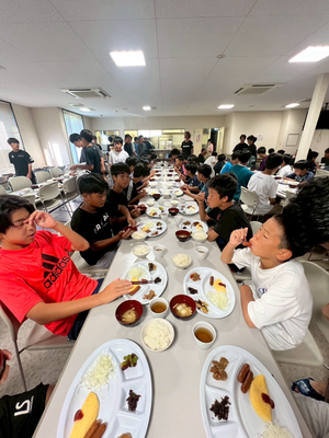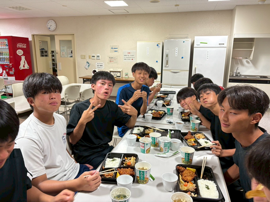 暑熱対策として宿舎での休憩とグラウンドでトレーニングや紅白戦を入れ替えながら行います。