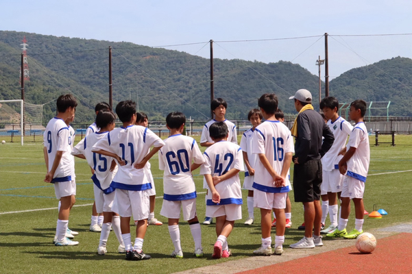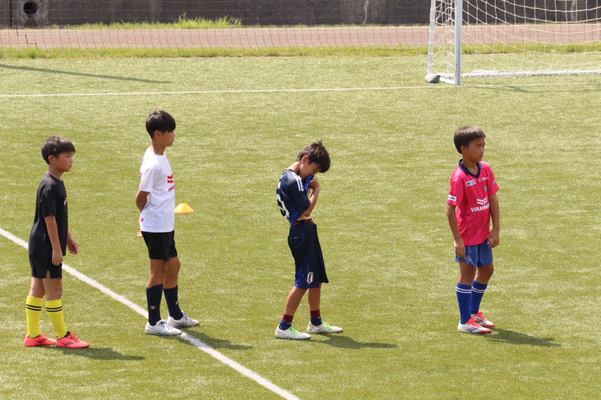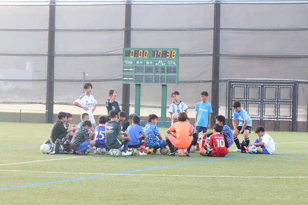 ジュニアユースは軽く全体ミーティングをしてから各カテゴリーに分かれて午前の部がスタート。